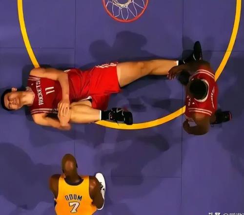 不小心撞击到了姚明的腿部,剧烈的疼痛瞬间蔓延全身。