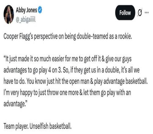 赛后谈及自己作为新秀遭遇包夹时,弗拉格表示:“这反而让我更容易解决问题,为队友创造4打3的机会,我很乐意多传一次球,让队友们在人数占优的情况下打出优势篮球。”